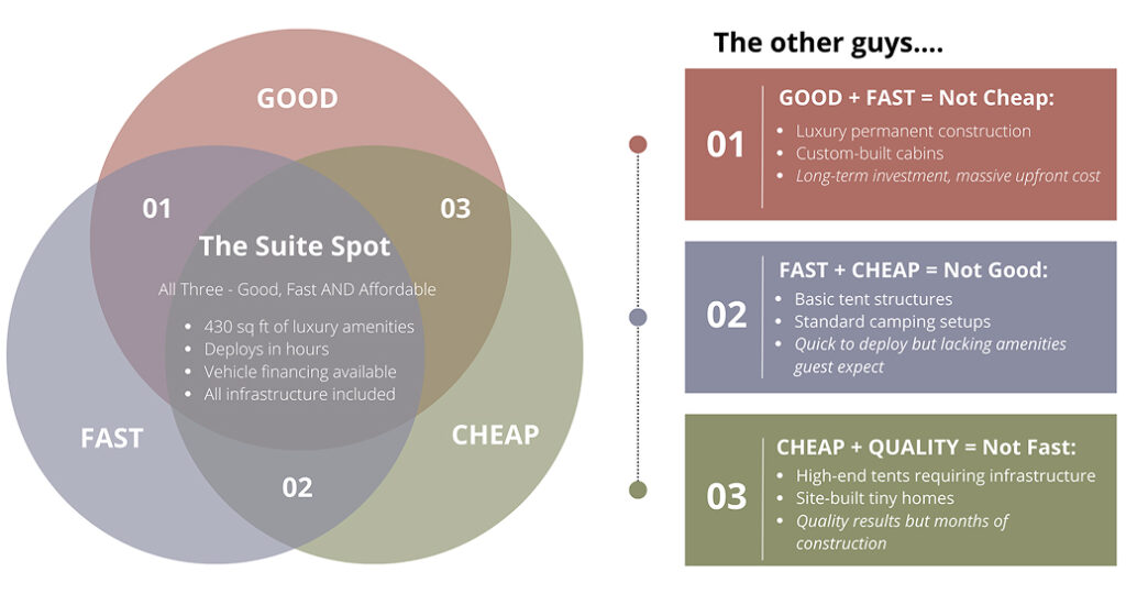 Every other option forces you to sacrifice something critical – speed, quality, or cost. The “Suite” Spot delivers all three, letting you focus on what matters: generating revenue and delighting guests.